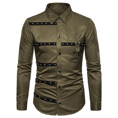 Per uomo Camicia Camicia elegante Camicia con Bottoni Semplice Matrimonio Feste Verde militare Azzurro cielo Manica Lunga Bavero Primavera Autunno Abbigliamento