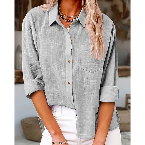 Per donna Camicia Blusa 100% cotone Semplice Vintage Casual Manica Lunga Colletto a Camicia Top Regolari Quotidiano Ferie Uscire Tasca Bottoni Nero Bianco Rosa Verde militare Blu marino Estate