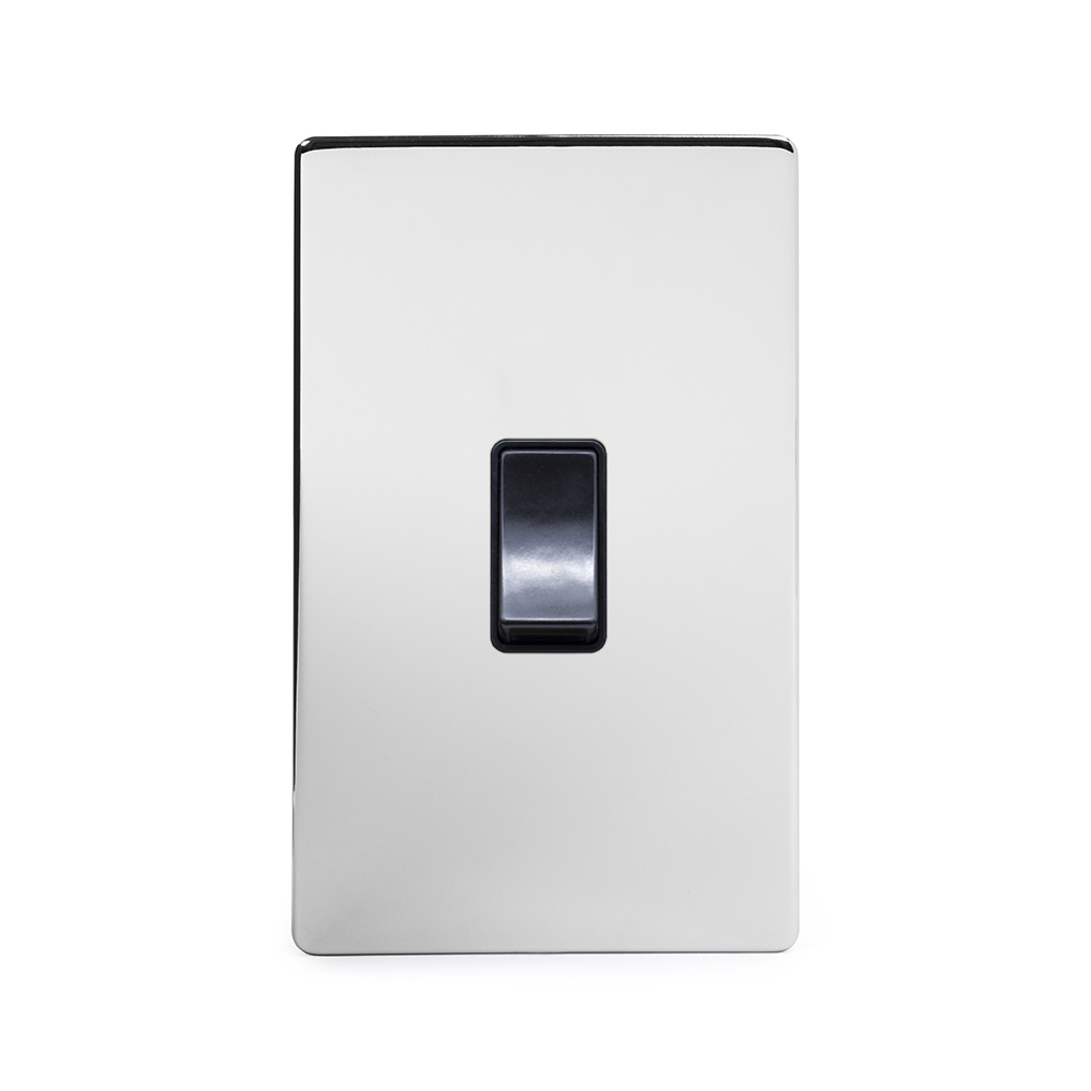 Soho Polished Chrome 45A 1 Gang Double Pole Switch Large Plate Blk Ins Screwless - Size: 86mm x 146mm x 4.5mm - The Soho Lighting Company