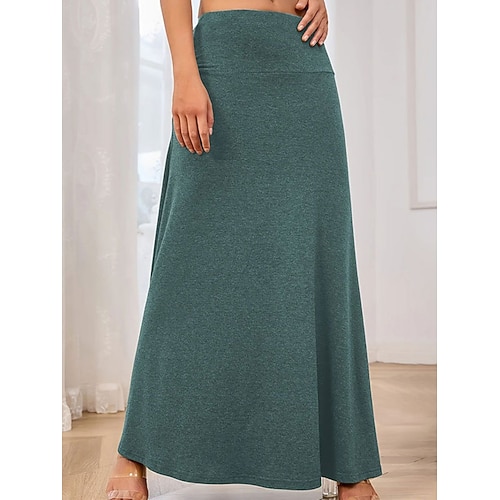 Per donna Gonna Linea A Moda Casual Maxi Vita Alta Gonne Semplice Lavoro a maglia Elasticizzato Streetwear Quotidiano Vinaccia Verde salvia Nero Verde militare Primavera Fil di lana Poliestere