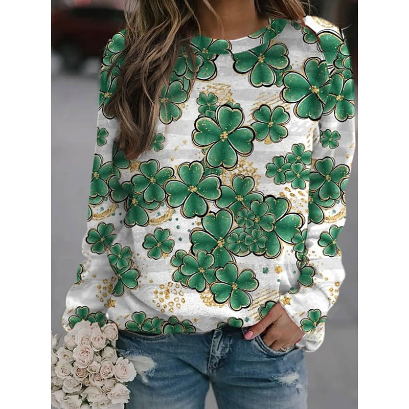Women's Pullover Sweatshirts Graphic Shamrock Casual Long Sleeve Crew Neck Regular Tops Casual Holiday Print White Green Spring Winter