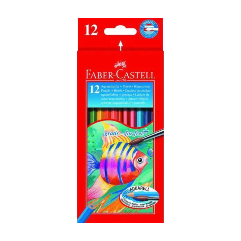 FABER-CASTELL Boîte de 12 Crayons Aquarellables + Pinceau