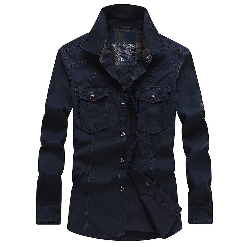 Men's Cargo Shirt Hiking Shirt Tactical Military Shirt Long Sleeve Turndown Top Outdoor Breathable Cotton Army Green Khaki Dark Blue Hunting Workout Traveling