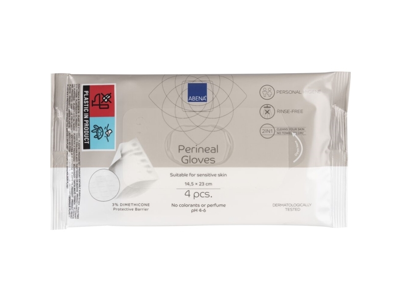 Perinealhandske, ABENA, halv-fold, 23x14,5cm, hvid, uden farve og parfume, med 3% Dimethicone, 4 ... - (50 stk.)