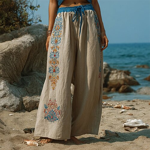 Per donna Pantaloni ispirati al lino Gamba larga Pantaloni Palazzo Moda Boho Lunghezza intera Vita Alta Fiore Elastico in vita Traspirante Confortevole Micro-elastico Streetwear Abbigliamento