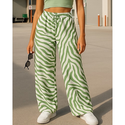 Per donna Gamba larga Pantaloni Eleganti Dritto Streetwear Casual Lunghezza intera Naturale Semplice Tasca Elastico in vita Fibbia Confortevole All'aperto Streetwear Uscire Verde mela Grigio scuro
