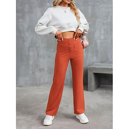 Per donna Gamba larga Pantaloni Eleganti Streetwear Casual Lunghezza intera Naturale Semplice Tasca Elastico in vita Comodo All'aperto Confortevole Vacanza Uscire Grigio scuro Rosso arancione Nero