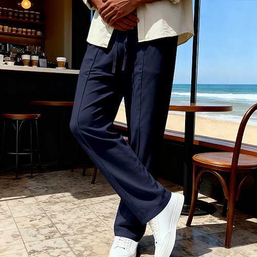 Per uomo Pantaloni di lino Pantaloni Pantaloni estivi Pantaloni da spiaggia A cordoncino Vita elastica Gamba dritta Liscio Comfort Traspirante Informale Giornaliero Per eventi Di tendenza Classico