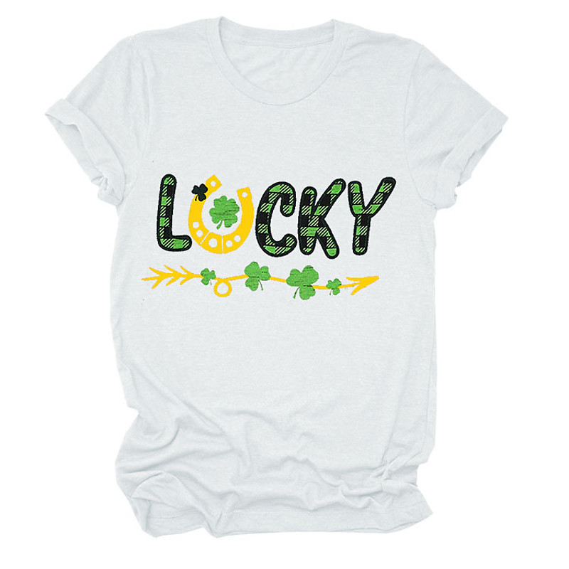 St. Paddy's Day St. Patrick's Day Women's T Shirt Shamrock Letter Fashion Short Sleeve Round Neck Regular Tops Casual St.Patrick's Day Print Blue White Wine Green Light Grey Spring Summer