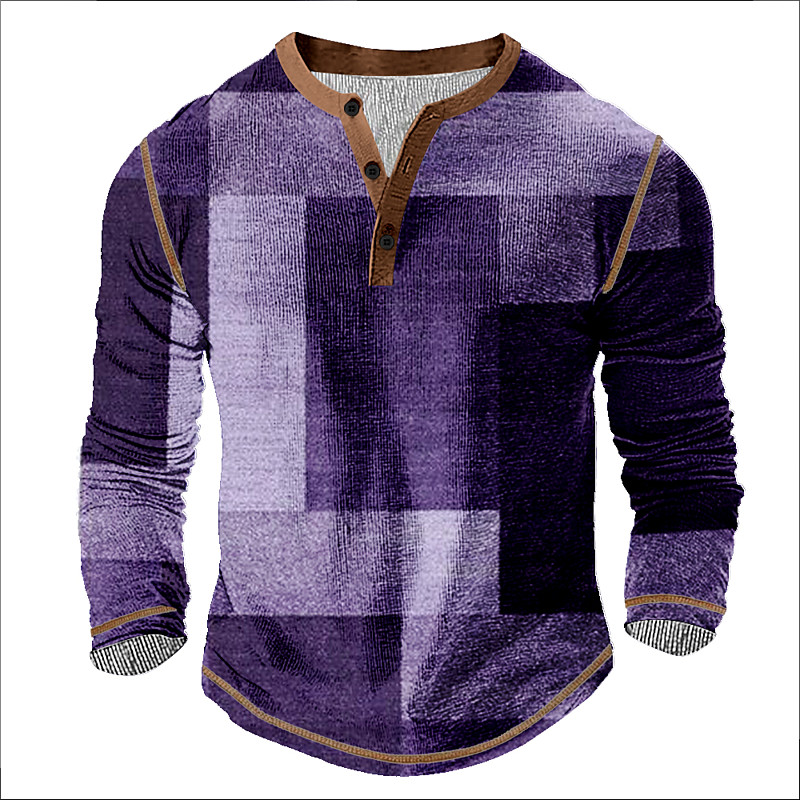 Men's Graphic Abstract Henley Shirt Tee Long Sleeve Vintage Fashion Designer Outdoor Casual Daily Spring Fall All Seasons Dark Grey Green Dark Blue Purple Henley Henley T-Shirt