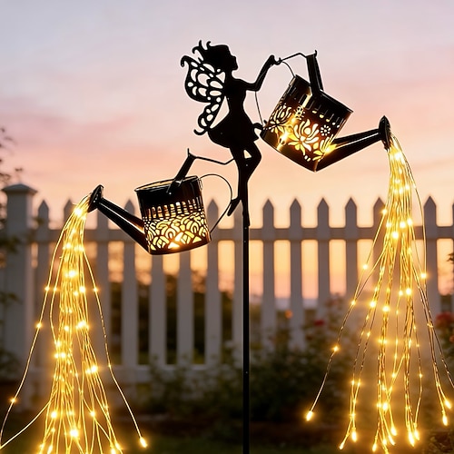 Luci solari a LED per esterni per cortile, prato, fata, brocca d'acqua, cascata, luce ad acqua corrente, doppio gancio impermeabile, luci solari decorative per giardino esterno, cortile, prato,