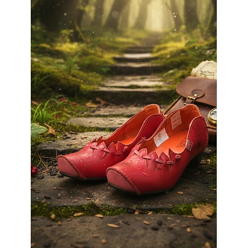 scarpe da donna in pelle con tacco basso in stile vichingo medievale – dettagli retrò verdi cuciti a mano per costumi, fiere rinascimentali, festival e abiti vintage quotidiani