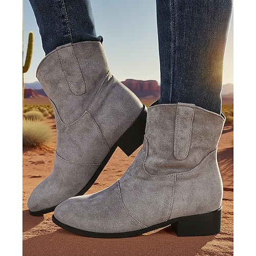 stivaletti western in finta pelle scamosciata marrone da donna – stivali da cowboy con tacco basso in stile vintage per outfit casual