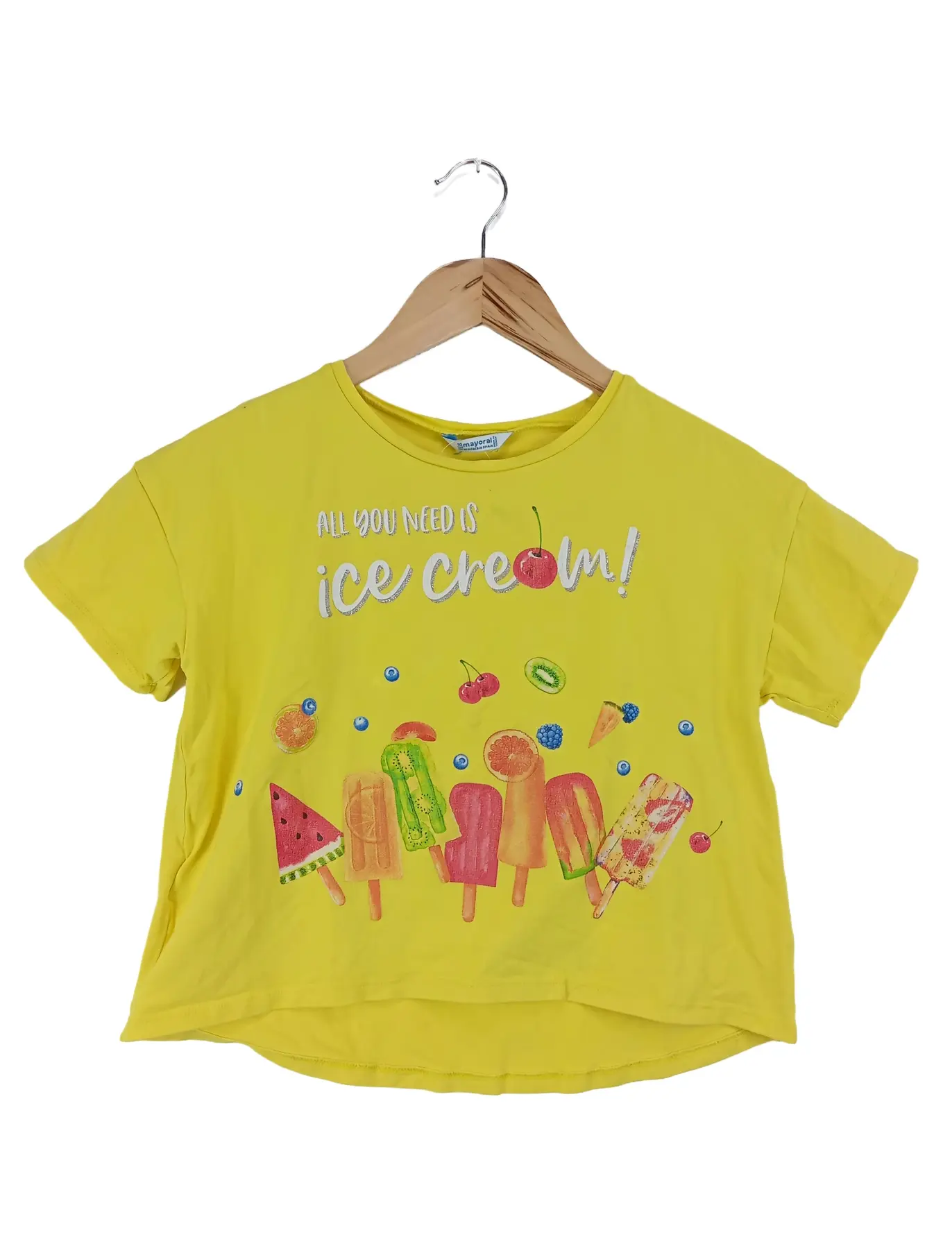 MAYORAL Kinder T-Shirt 140 Gelb Eiscreme-Motiv Baumwolle
