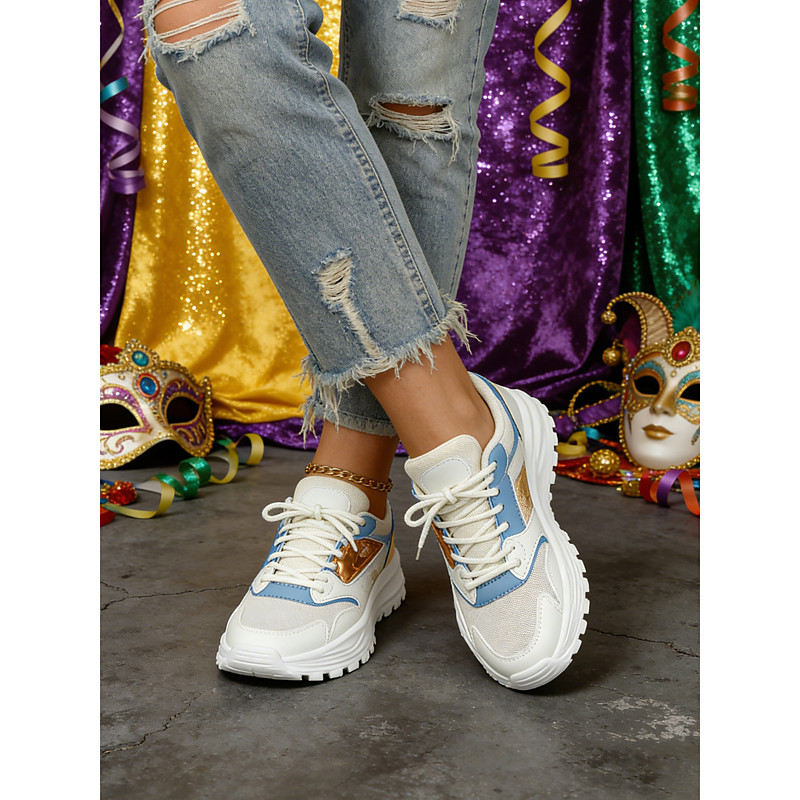 Damenschuhe Mardi Gras mit Konfetti-Druck Schnür-Leinensneakern - Stilvolle bequeme Freizeit-Schuhe für Karnevalsparaden Freizeitpark-Besuche Straßenfeiern sommerliche Ausflüge