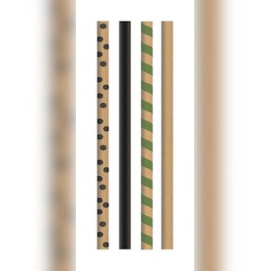 Trinkhalme in ECO Punkte-farbig-Streifen - gemixt aus Papier, Ø 8 mm / 20 cm, 150 Stück - Mank