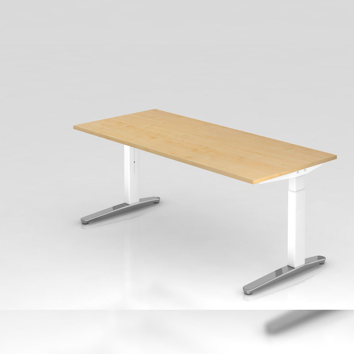 PROREGAL Schreibtisch Mika | Ahorn | Weißes Gestell poliert | BxT 180x80cm | Arbeitshöhe 65-85cm | höhenjustierbar, 1cm Raster | C-Fuß-Gestell