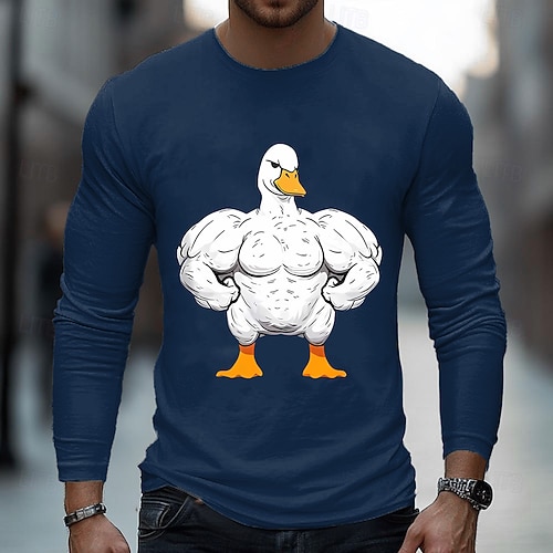 Herren Lustig Gans T Shirt Langarm T-Shirt 3D-Druck Rundhalsausschnitt Hemd Mode Täglich Straße Lässig Täglich Schwarz Blau Braun Sommer Frühling Bekleidung S M L XL XXL XXXL