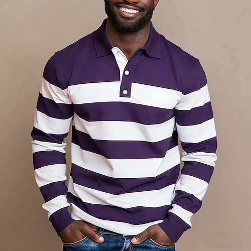 Herren Horizontale Streifen Rugby-Poloshirt Langarm Polo-Shirts Hemden mit Kragen Sportbekleidung Lässig Outdoor Schule Athleisure 3D-Druck Frühling Herbst Blau Rote Purpur