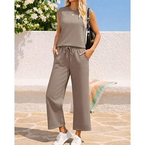 Per donna Set di tute e pullover Tuta da 2 pezzi Abiti da salotto Coulisse con tasca Tinta unita Set di Abbigliamento Sportivo Estate Primavera blu navy Nero Allenamento in Palestra Jogging Corsa