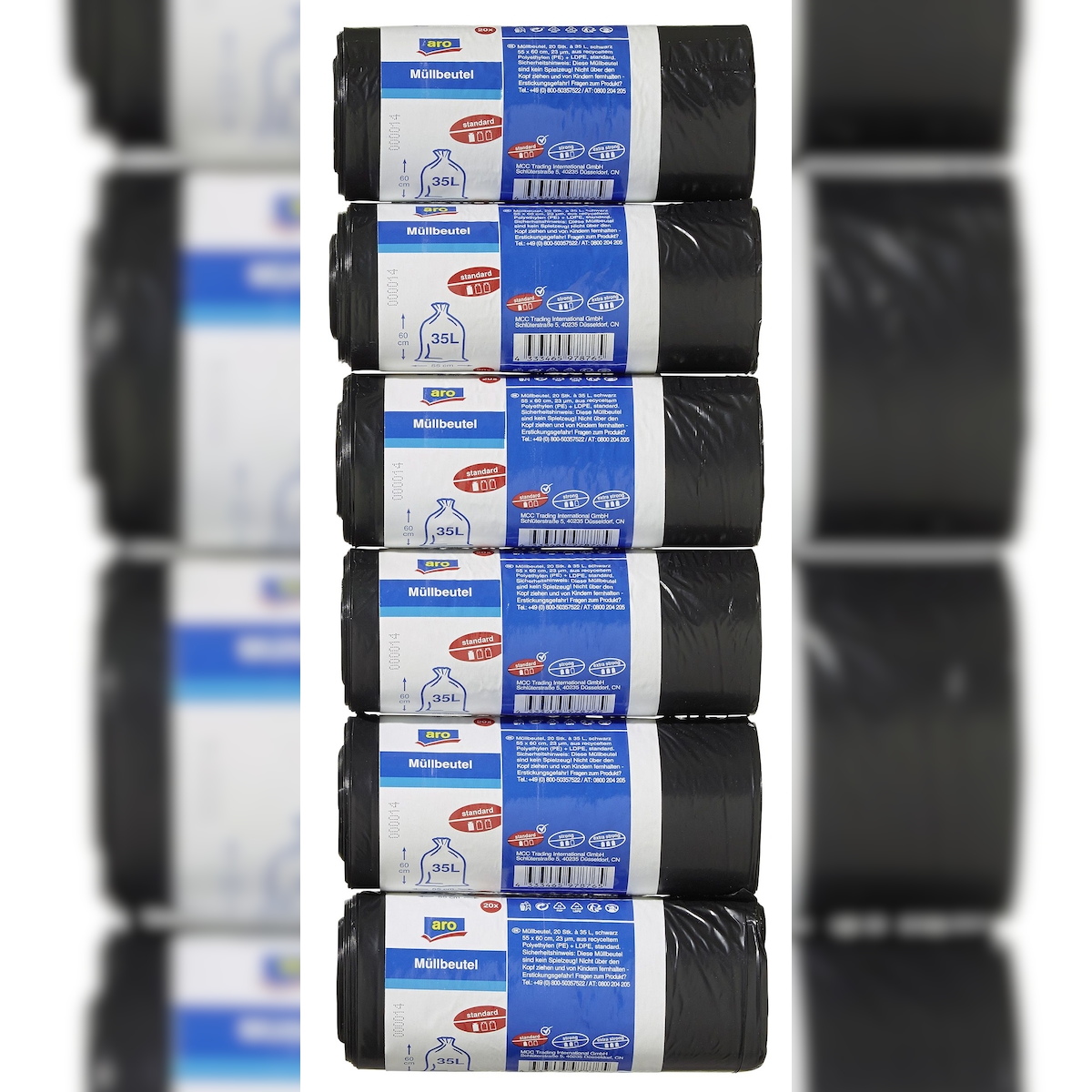 aro Müllbeutel, LDPE / PE, 23 μm, 55 x 60 cm, 35 L, schwarz, 6 Rollen x 20 Stück (120 Stück)