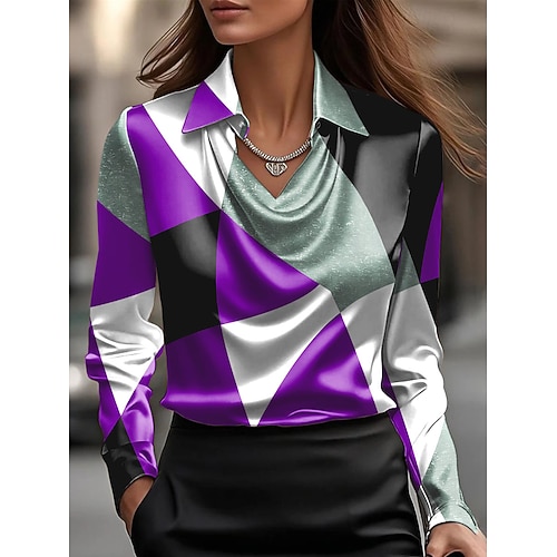 Per donna Camicia Ombre Grafico Geometrico Elegante Casual Manica Lunga Scollo a Cascata Top Regolari Lavoro Abbigliamento da sera Quotidiano Arricciato Drappeggiato Blu Vino Viola Autunno Inverno