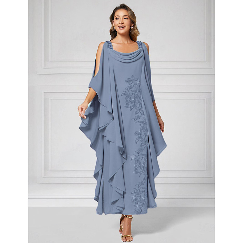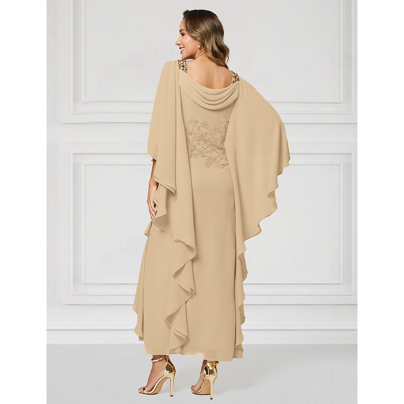 Sheath Column Ankle Length Party Dress Cocktail Dress Wedding Guest Dress Mother of the Bride Dress Half Sleeve Boat Neck Elegant Luxurious Sparkle Shine Wedding Guest Chiffon with Beading Tier