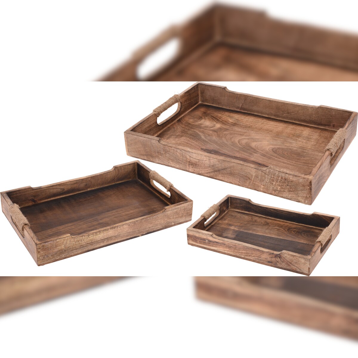 Tablett Holz Frühstück Tablett Serviertablett Vintage Tau Dekotablett Mangoholz 3tlg Set