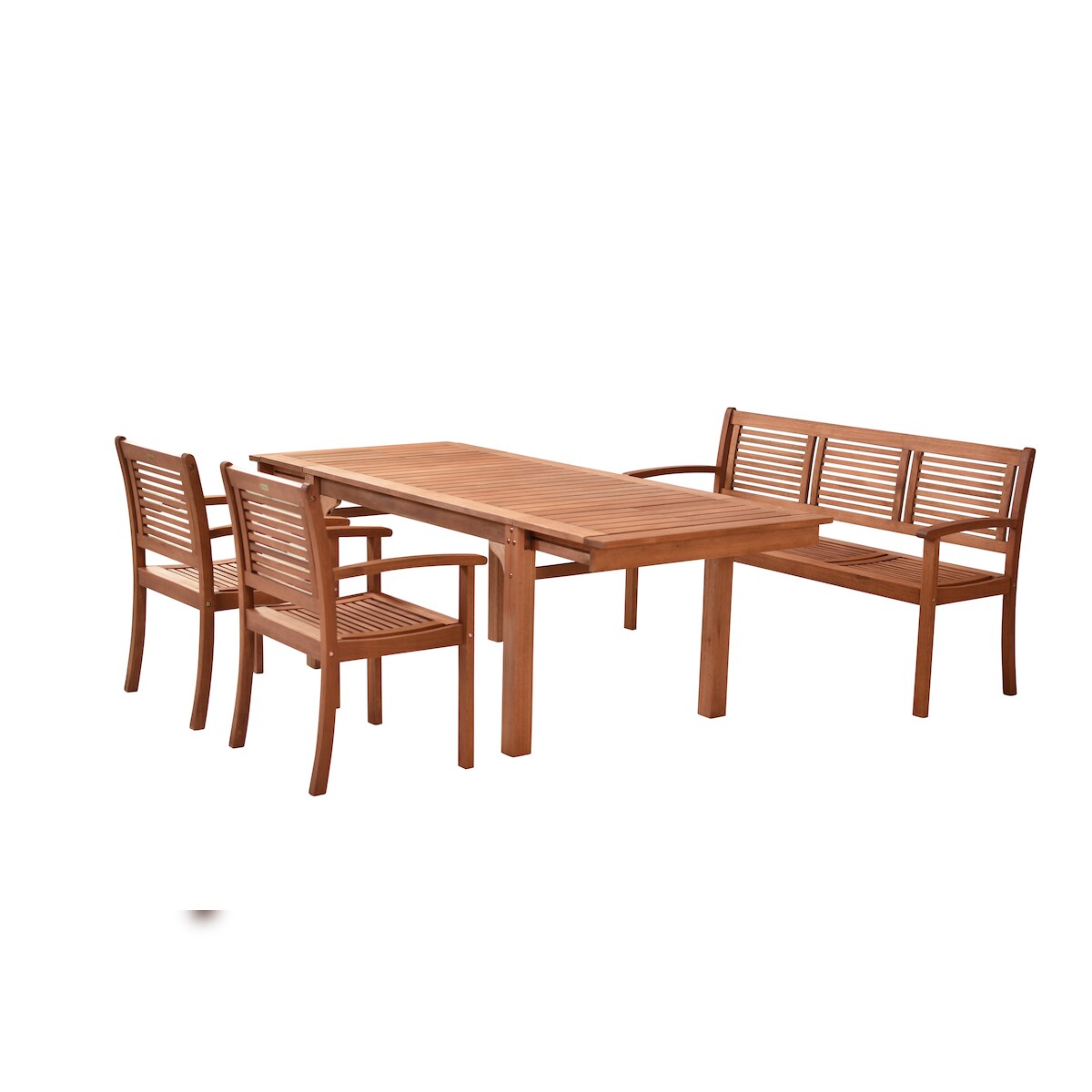 Merxx Cordoba Set 4tlg., 2 Sessel, 1 Bank 3-sitzig, Seitenausziehtisch 150 (185/220) x 90 cm, Eukalyptus