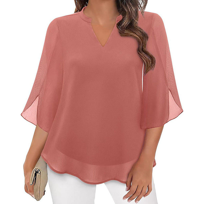Women's Blouse Chiffon Tops Plain Elegant Stylish Casual Half Sleeve V Neck Regular Tops Daily Holiday Going out Patchwork Black Pink Wine Red Royal Blue Summer Spring Fall