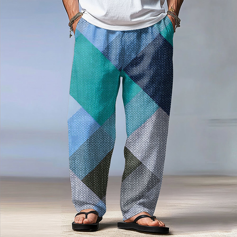 Men's Geometric Color Block Abstract Art Trousers Baggy Pants Casual Pants Mid Waist Fashion Home Outdoor Vacation Elastic Drawstring Waist Linen-Like Pants with Pockets Summer Spring 3D Print Blue