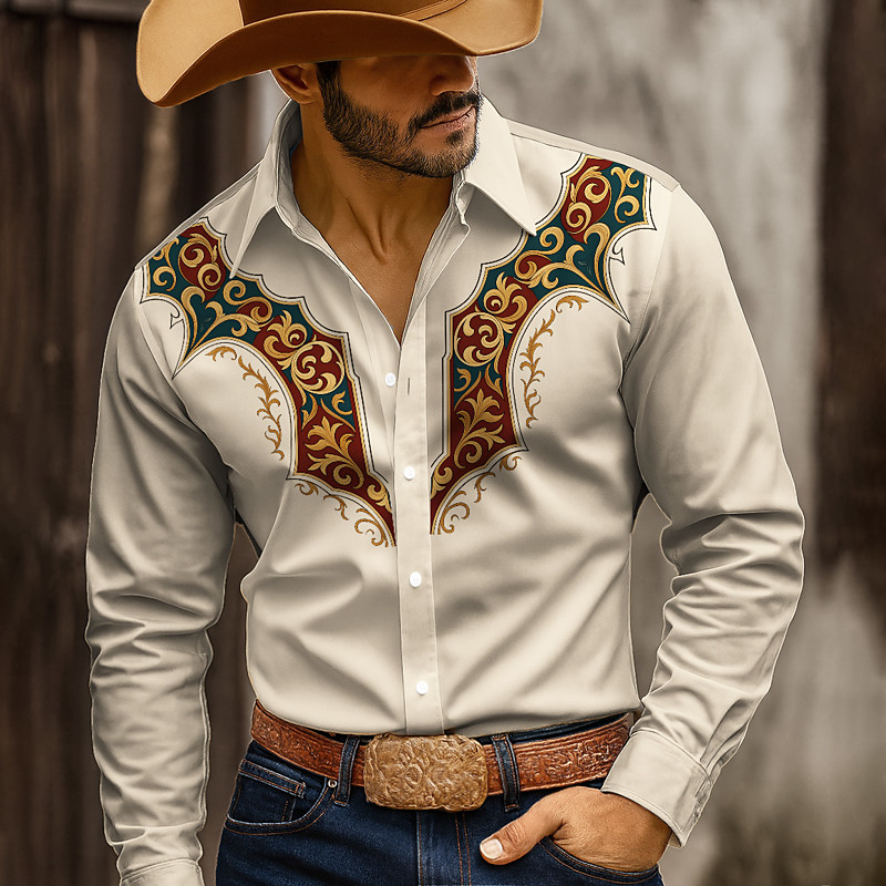 Men's Floral Print Shirt Button Up Shirt Cowboy Shirt Long Sleeve Western Style Outdoor Casual WorkWear Spring Fall Turndown 3D Print Collared Shirts Blue Green Beige