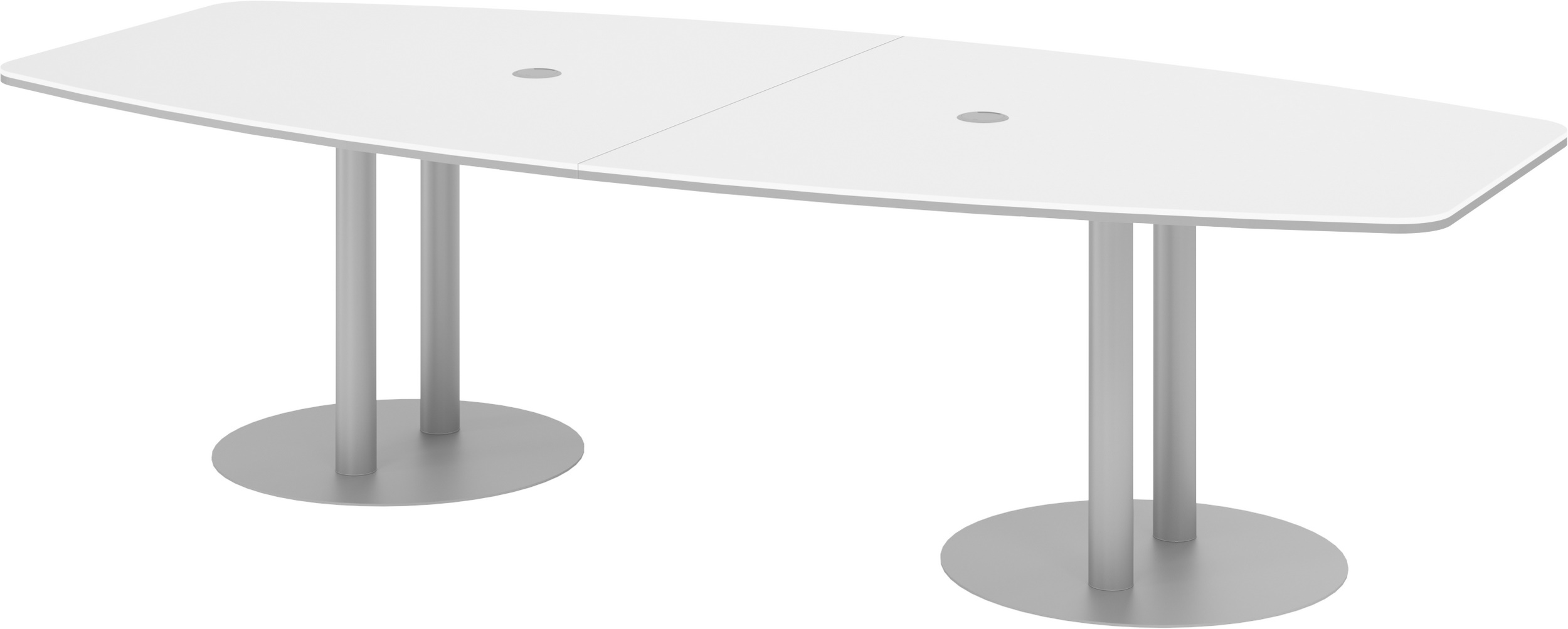bümö Konferenztisch oval 280x130 cm großer Besprechungstisch in weiß, Besprechungstisch mit Säule in silber, Meetingtisch für 10 Personen, XXL-Tisch