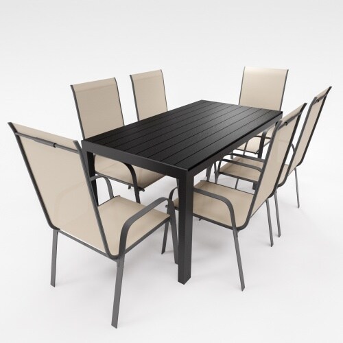 Lex Gartenmöbel Set Alu Tisch 7-tlg. 6x Stapelsessel Gartenstuhl Essgruppe Gartenset Sitzgruppe beige : Beige