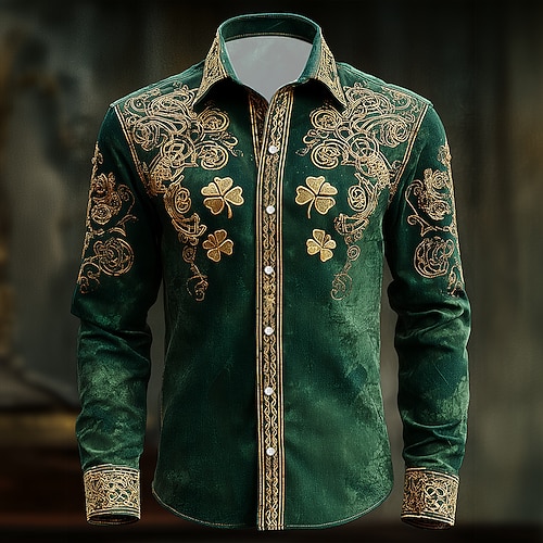 Festa di San Patrizio Per uomo Quadrifoglio Trifoglio Arte celtica Camicia Camicia con Bottoni Manica Lunga Vintage Retrò Ferie Primavera Autunno Collo ripiegato Stampa 3D Camicia tipo lino verde 1
