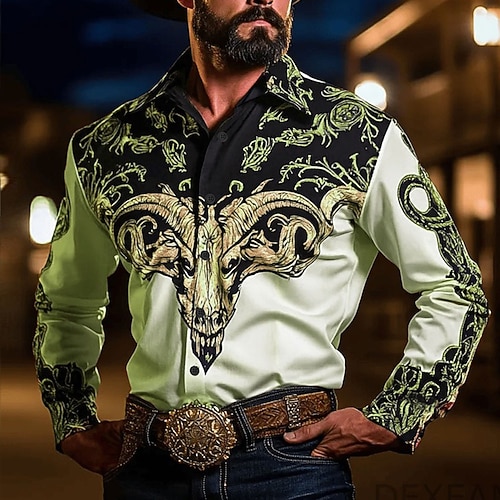Per uomo Stampa Floreale Fiori Camicia Camicia Western Camicia da cowboy Manica Lunga Vintage Retrò All'aperto Vacanza Primavera Autunno Collo ripiegato Stampa 3D Camicia tipo lino Blu 1# Blu