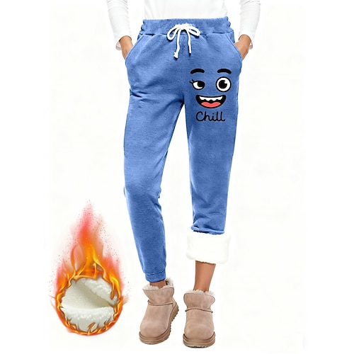 Per donna Pantaloni da tuta Pantaloni in Pile Pantaloni Eleganti Vacanza Moda Essenziale Lunghezza intera Vita Alta Lettera Coulisse Tasca Stampato Calore Termico Antivento Comodo Elasticizzato
