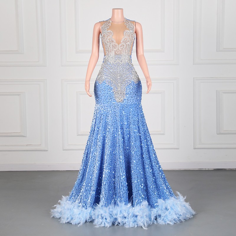 Mermaid Trumpet Sweep Brush Train Prom Dresses Evening Gown Ball Gown Formal Dress Elegant Sparkle Sleeveless Crew Neck Prom Formal Sequined Backless with Sequin Appliques