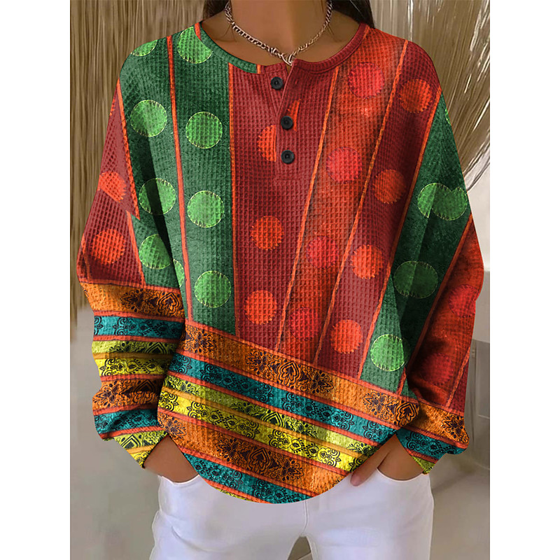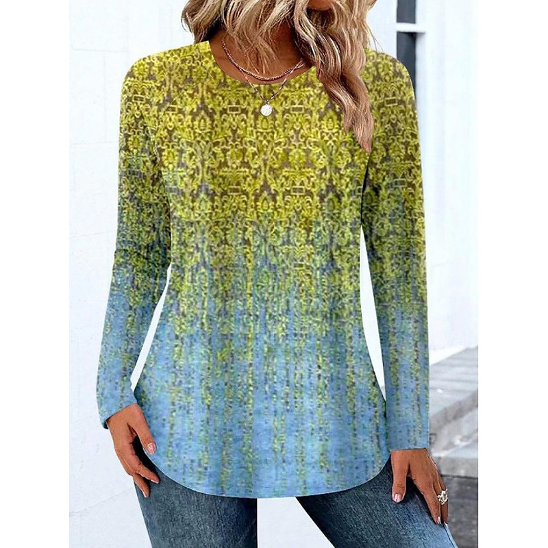 Women's T Shirt Ombre Graphic Geometric Vintage Stylish Classic Long Sleeve Crew Neck Round Neck Regular Tops Daily Print Black Red Dusty Blue Orange Green Spring Fall
