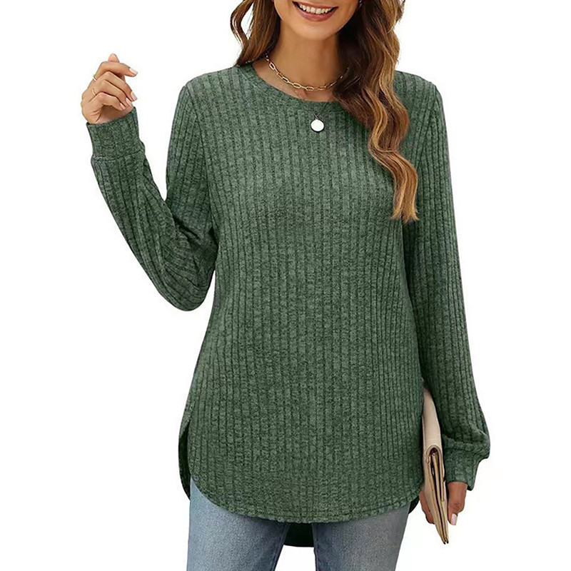 Women's Texture Blouse T Shirt Tee Top Plain Fashion Modern Long Sleeve Crew Neck Regular Tops Daily Going out Asymmetrical Black Wine Fuchsia Brown Green Spring Fall