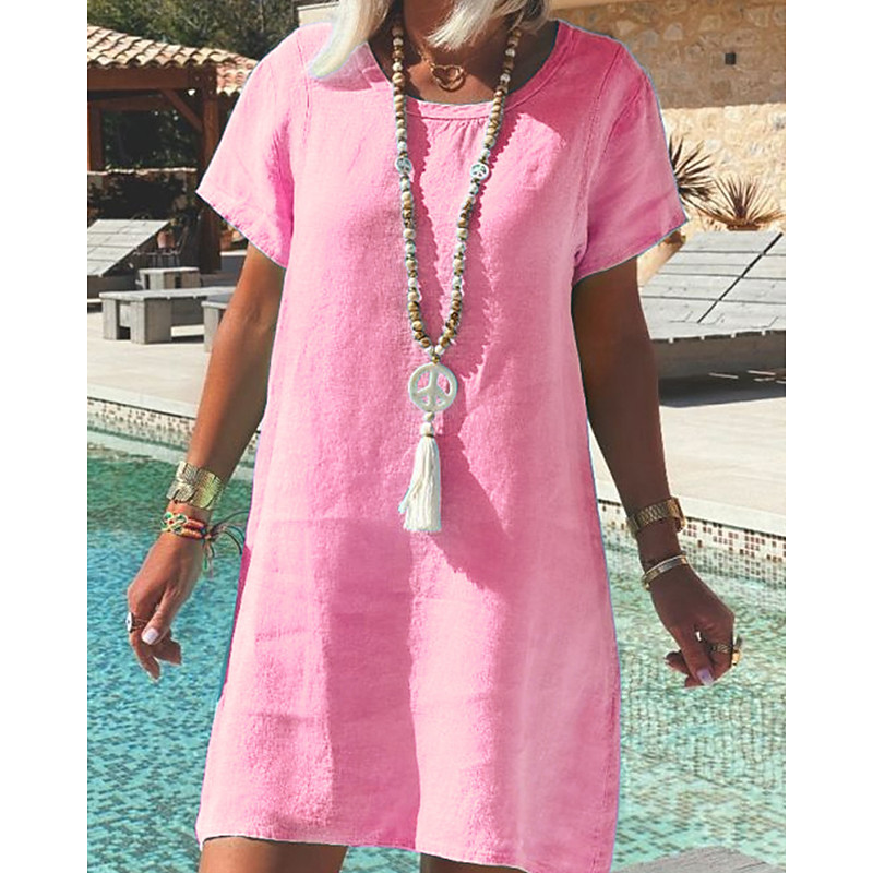 Women's Mini Dress Casual Dress Shift Dress Classic Modern Outdoor Vacation Holiday Regular Fit Plain Short Sleeve Crew Neck White Yellow Pink Purple Fall