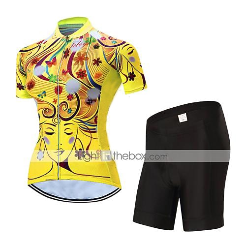 Per donna Maglia da ciclismo con pantaloncini Manica Corta Mountain Bike MTB Ciclismo su strada Blu Giallo Rosa Farfalla Motivo Floreale Bicicletta Strisce Riflettenti Gli sport Abbigliamento