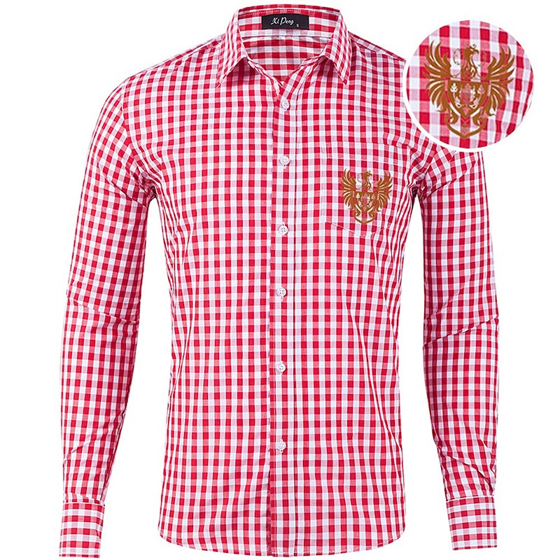 Oktoberfest Check Pattern Lederhosen Shirt German Eagle Crest Bavarian German Wiesn Men's Carnival Beer Festival Traditional Style Cloth Shirt
