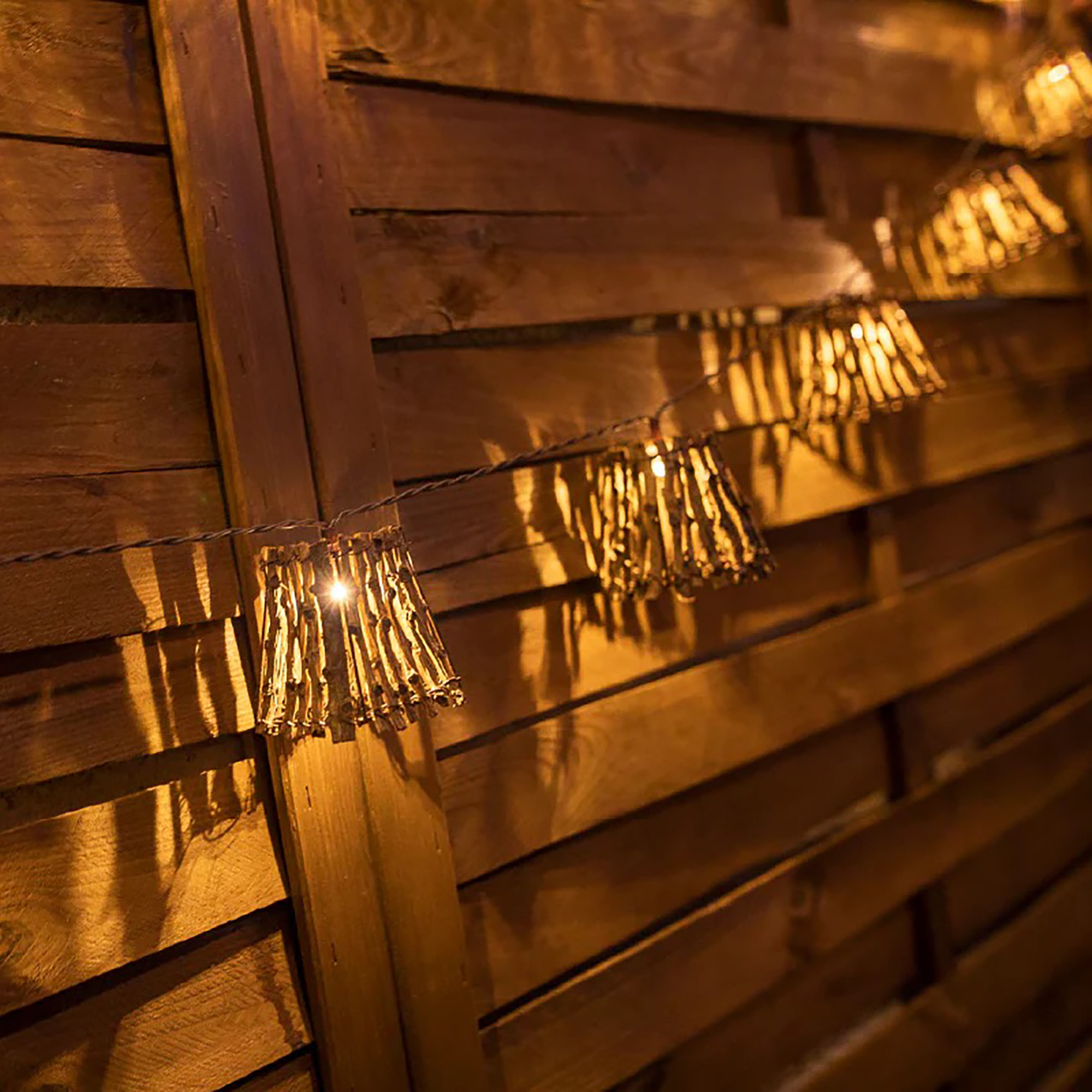 New Garden Carina - Lichtergirlande - 3,3 Meter Girlande, davon 1,5 Meter Schnur - 10 LED-Lampen inkl. - IP44 - Holz