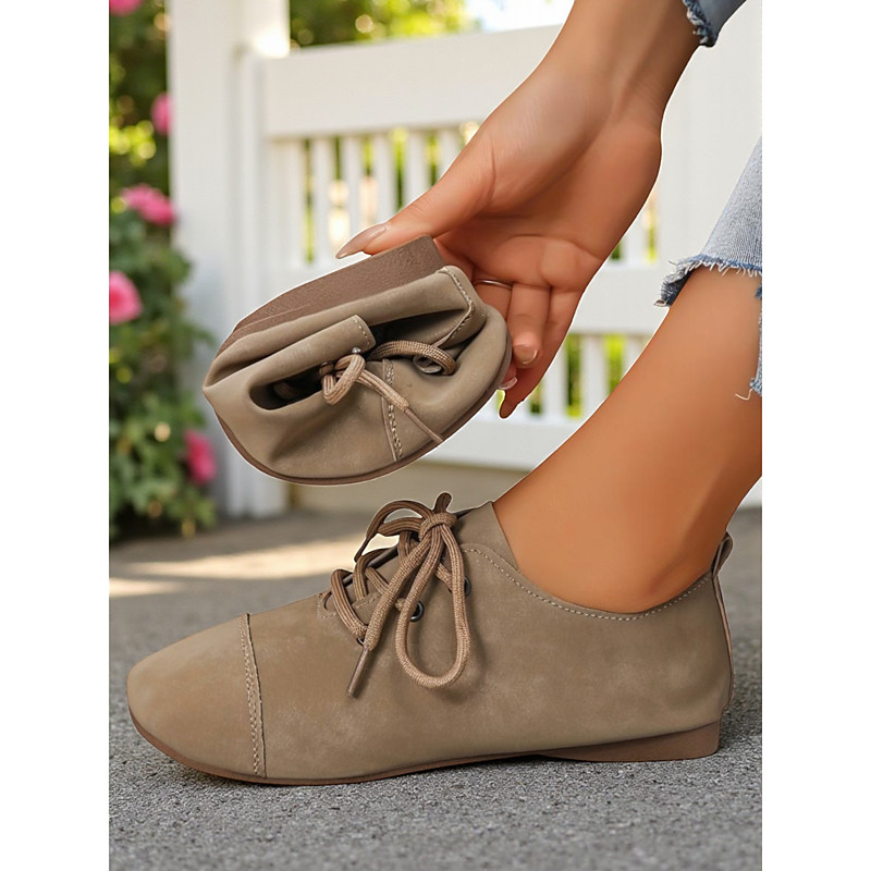 Women's Wide Fit Lace-Up Shoes – Casual Faux Suede Comfortable Walking Shoes for Daily Wear and Travel