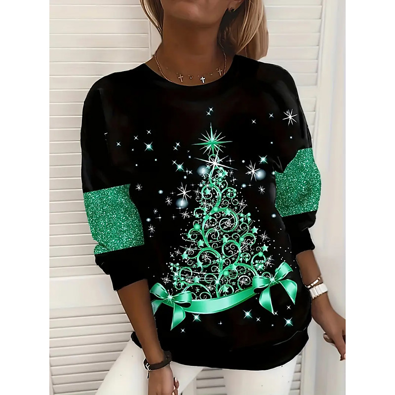 Christmas Women's Pullover Sweatshirt Hoodies Graphic Tree Fashion Casual Long Sleeve Crew Neck Regular Tops Street Dailywear Print Pink Blue Purple Gold Green Spring Fall Winter