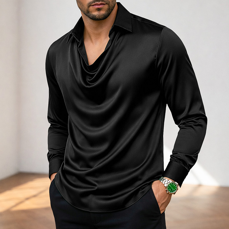 Men's Shirt Silk Like Satin Shirt Casual Shirt Plain Daily Vacation Silver Black Gold Green Long Sleeve Cowl Spring Spring Fall Clothing Apparel Ruched