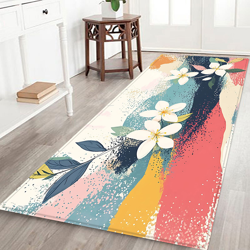 Area Rug For Hallway Kitchen Entrance Floral 3D Soft Non-Slip Customizable Runner Carpet Corridor Staircase Floor Mat Home Decorative Long Rug