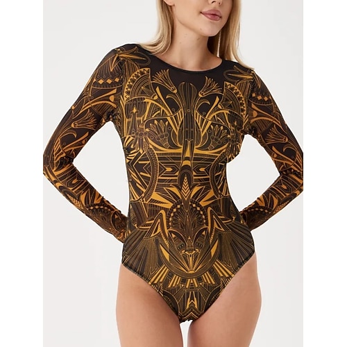 Costume da bagno monopezzo da donna snellente sexy con ritagli boho monokini controllo della pancia vita alta slim senza schiena moda per le vacanze grafica geometrica scollatura rotonda maniche