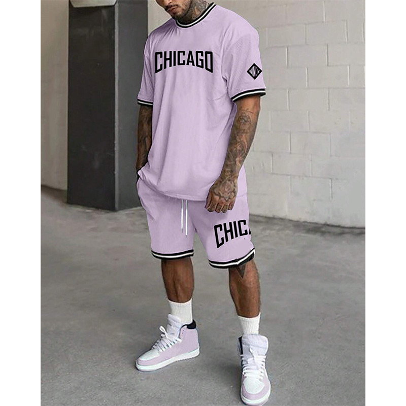 Men's Tracksuit Outfit Set Shorts Crew Neck Outdoor Daily Sports Pocket Drawstring 2 Piece Stripes Royal Blue Khaki Light Grey Polyester Activewear Classic Casual Summer